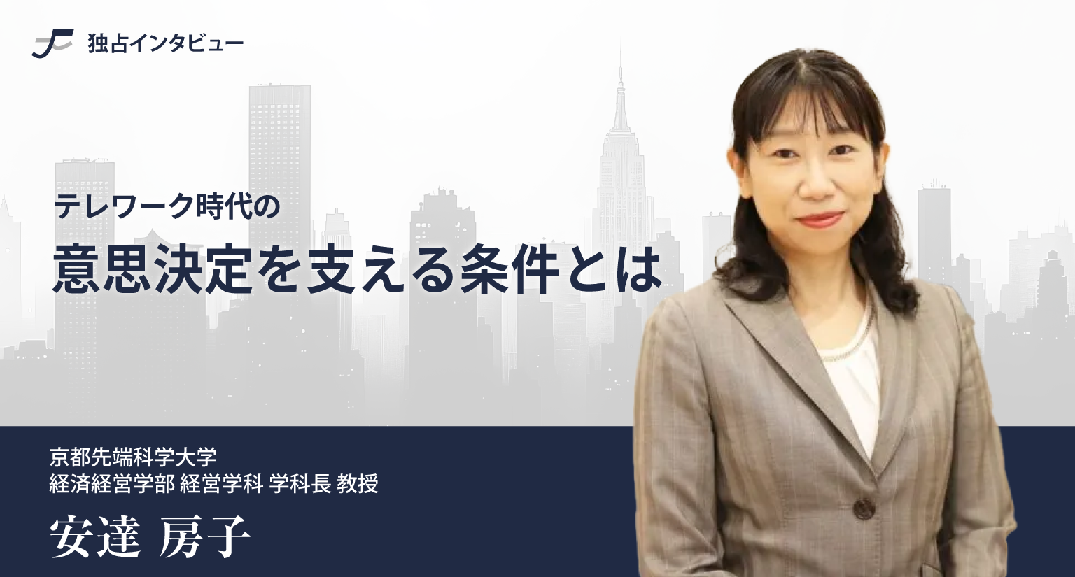 意思決定の質を保つには、どこが弱くなりやすいのかを捉えたうえで、組織としてのコミュニケーションを設計していく視点が欠かせません。本インタビューでは、テレワーク下の意思決定と学習のポイントについて京都先端科学大学の安達房子 教授にお伺いしました。