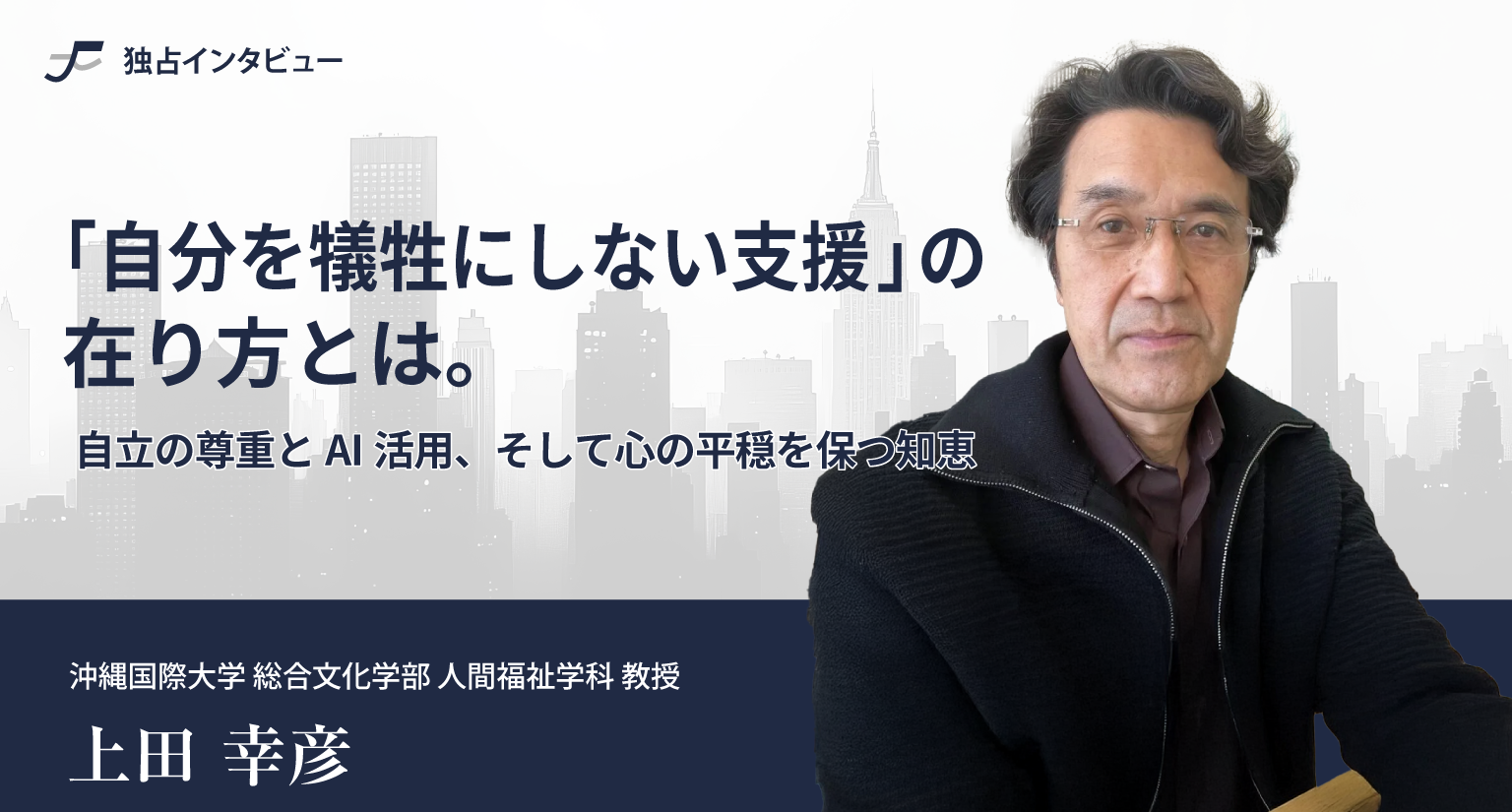 沖縄国際大学の上田幸彦教授は、本人と「対等な・水平な関係」を築き、過剰な支援を控える大切さを説く。AIの具体的な活用術から、介護者の心を守るマインドフルネスまで 。家族が共倒れせず、穏やかに日々を過ごすための指針を聞いた。