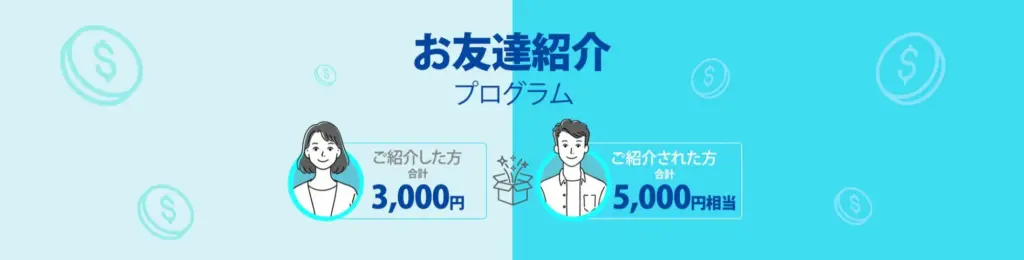 - お友達やご家族を紹介すると、紹介者と紹介された方の双方にキャッシュバック特典をプレゼント!